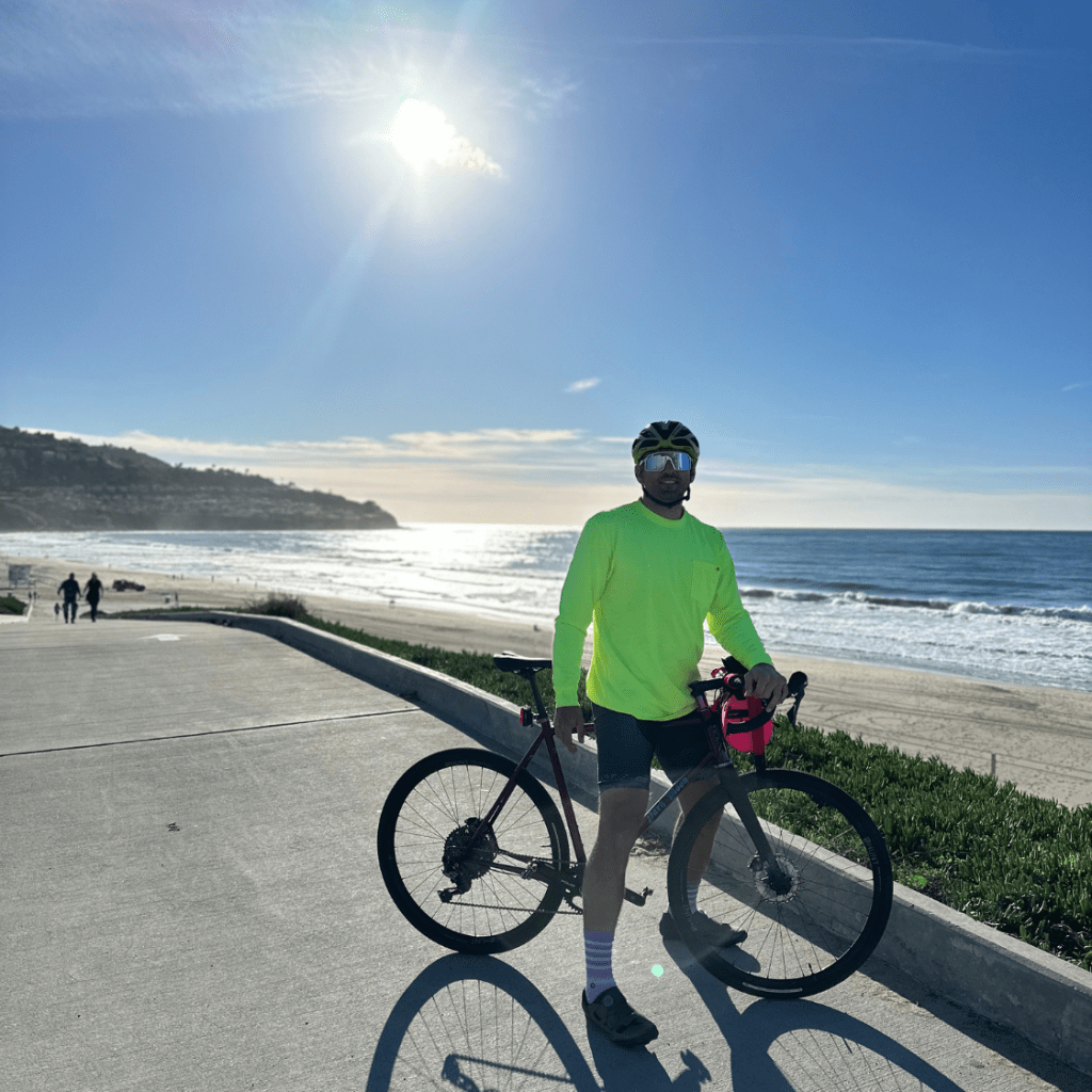 As we rode along the ocean, the wind painted a poetic symphony, visible in the sand swirling along the beach, erasing any trace of previous footprints. Despite the gusts, the bike path remained clear, offering an ideal setting for my first time clipping in on that iconic beach route. Perhaps the wind had a role to play, as the path seemed unusually quiet, a welcome surprise that made the ride even more enjoyable.